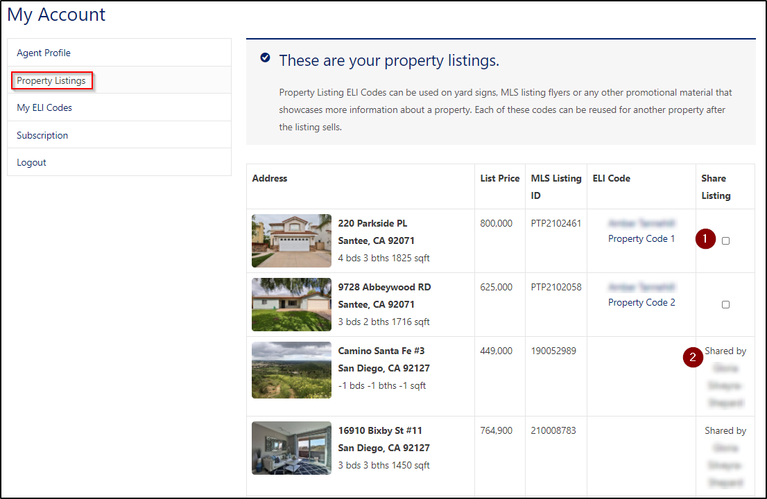 - To Share a Property with your colleagues, click “Property Listings” and check Share Listing on the property you wish to share.