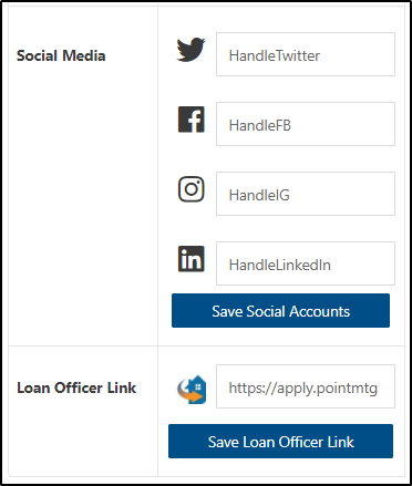 Let’s add some Social Media links and a Loan Officer link from Point Mortgage Corp. to our Agent Profile Code. Don’t forget to click Save!